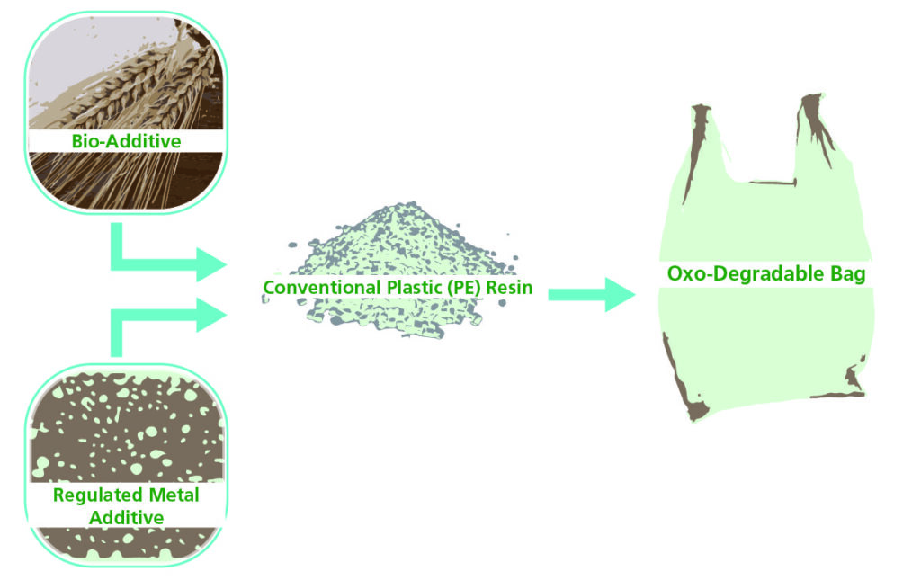Some products made from traditional plastic are effectively recycled (polypropylene, polystyrene, PET, etc.). When proper infrastructure and collection methods are available, recycling is the best end-of-life option for these materials. Since oxo-degradable products often replace hard or impossible to recycle products and contain additives, they are not recyclable. When recycling is not an option, these materials should be disposed of in a properly controlled landfill which will significantly limit the ability of leakage and pollution resulting from degrading plastics.