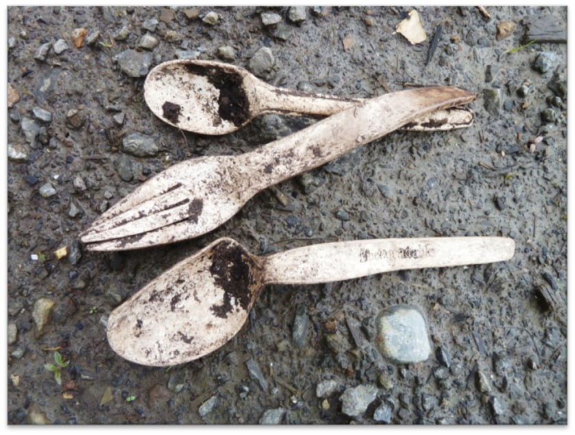 Oxo-degradable cutlery found in a composting facility
