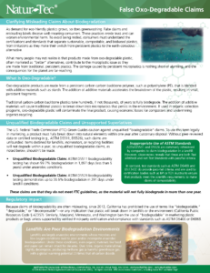 Due to a lack of enforcement and the pace at which the bioplastics industry is growing, you may encounter products misleadingly marketed as compostable or biodegradable.