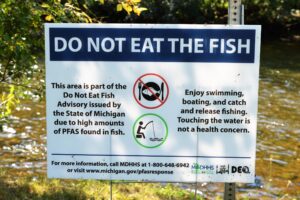 A sign in Michigan warning of the danger of fish contaminated with PFAS.