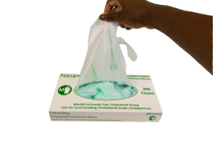 When food preparation is complete, the gloves can be composted along with food scraps and organics.
